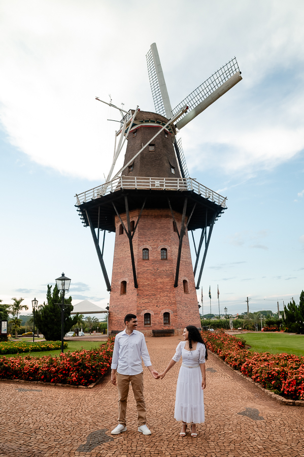 Após terminarmos as fotos no Bloemen Park seguimos para o moinho, mais um lindo espaço com cenários que tornaram as composições das fotos perfeitas e, com toda certeza criaram memórias para o casal enquanto conheciam cada pedacinho do local. Eles realmente estavam se divertindo.