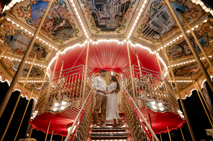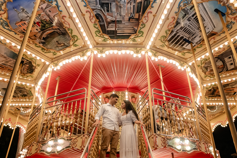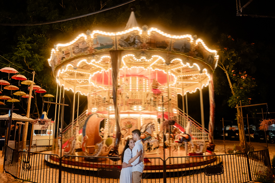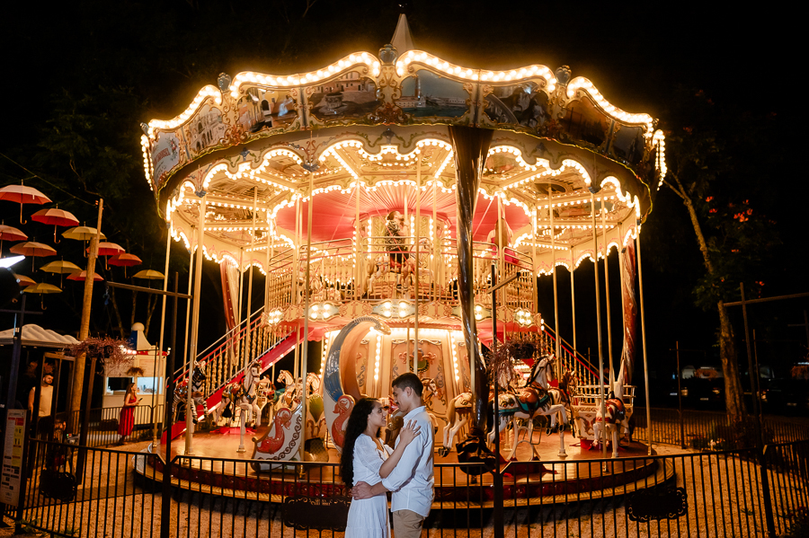 E para fechar com chave de ouro, seguimos um pouco mais adiante e encontramos um carrossel que nos fez a todos lembrarmos de nossas infâncias e viajar para um tempo onde a felicidade existe. Trouxe uma magia no ar e a sensação de que com certeza nossos sonhos são possíveis e ali, a Wynne e o João estavam realizando um sonho e com certeza estavam imaginando suas vidas juntos, nessa nova fase que irão iniciar, com a família que irão construir.