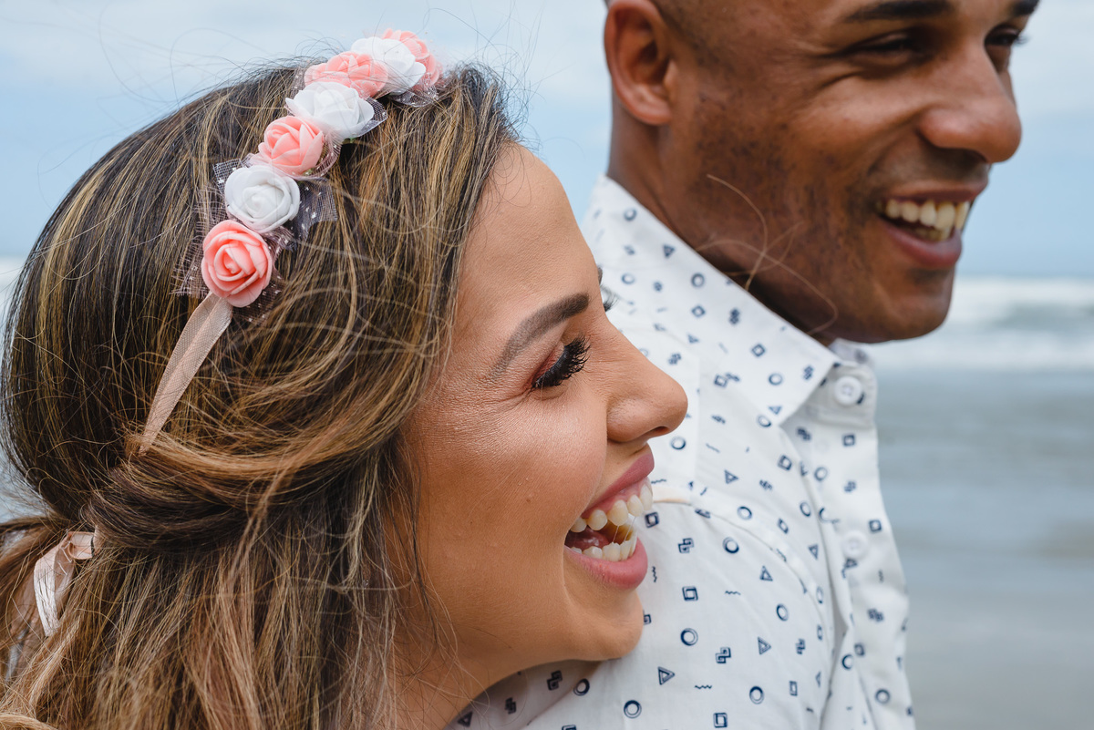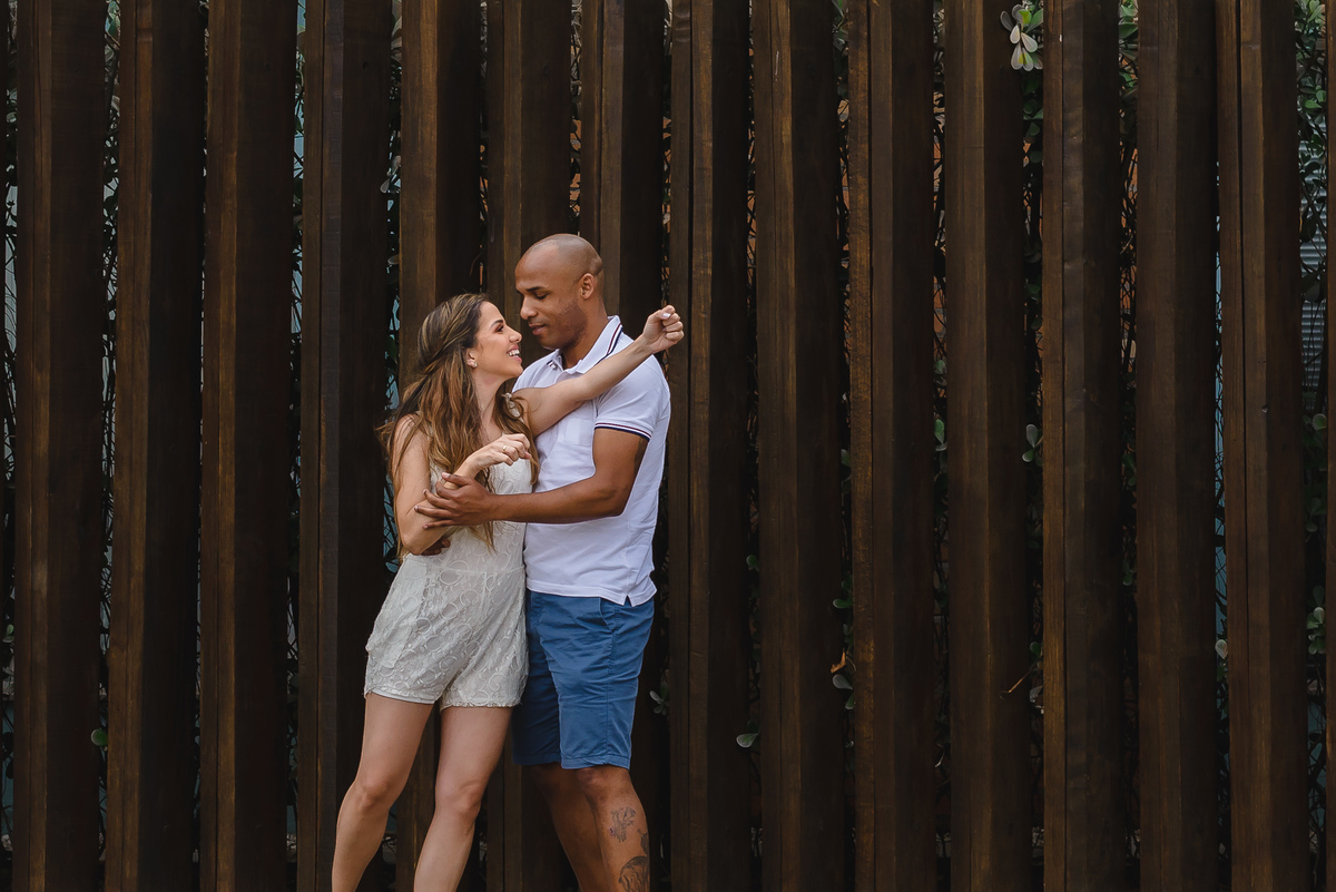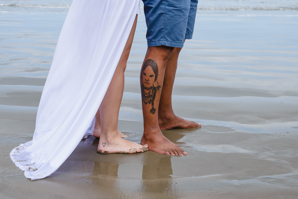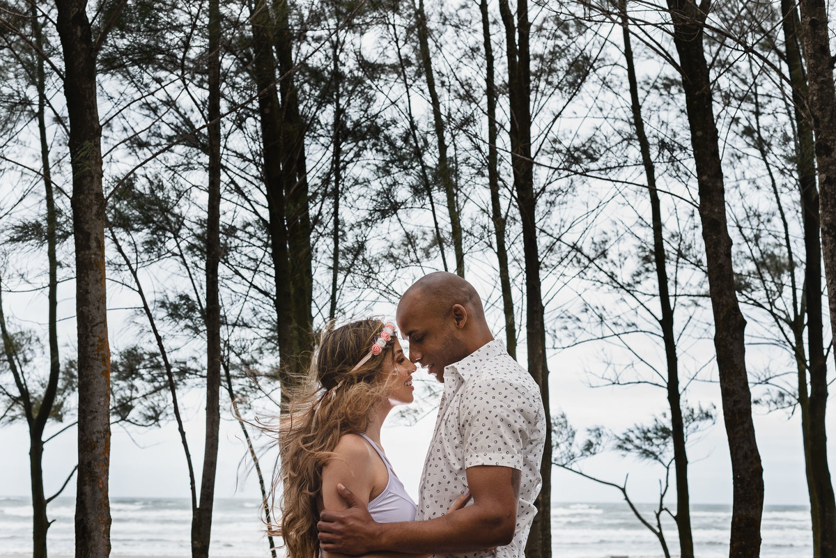 O local escolhido pelo casal foi a Praia dos Pescadores, Itanhaém – SP. Assim como o tempo que teve desde ensolarado a garoa, tudo fluiu naturalmente entre eles, no início tímidos, mas logo esqueceram da câmera e curtiram a linda paisagem e o momento que estavam vivendo ali. Focamos nos gestos, nos sorrisos, no olhar, no toque, foi lindo! Depois os levamos a uma outra praia, também em Itanhaém, onde tem muitas árvores, para buscarmos novas composições e aquele toque de estar em um bosque perfeito, romântico e inspirador. E finalizamos com algo mais casual e urbano pelas ruas da linda Itanhaém, próximo ao centro.