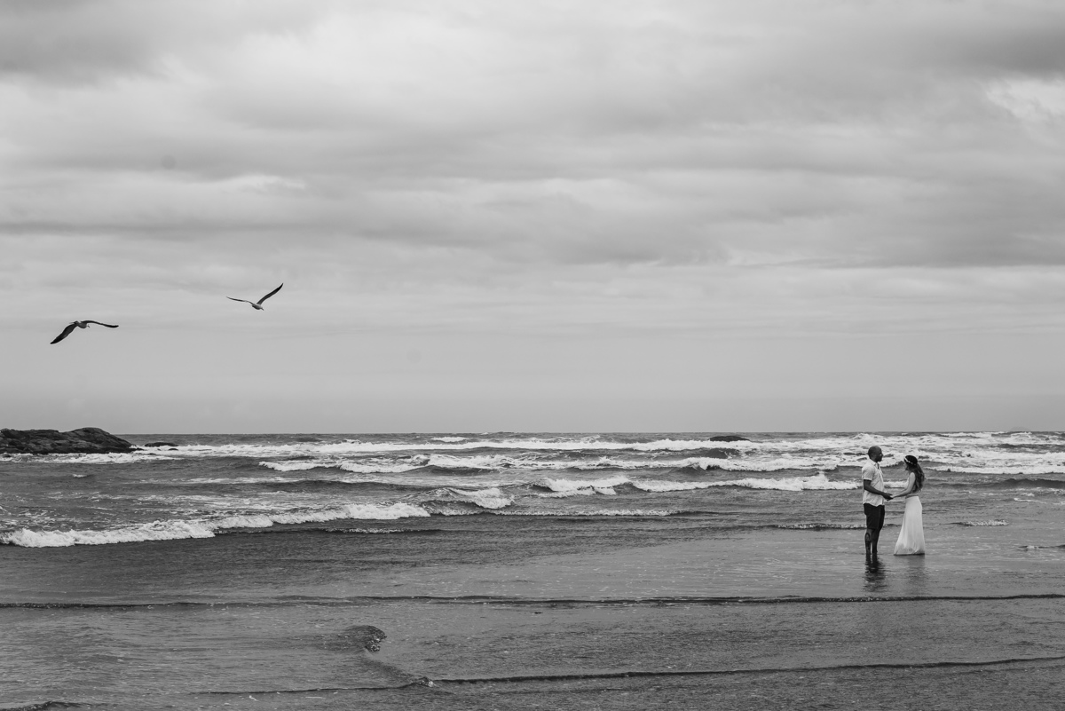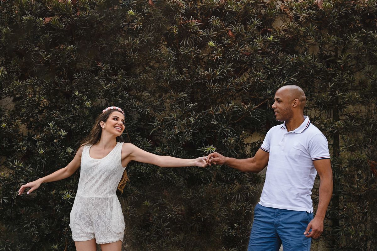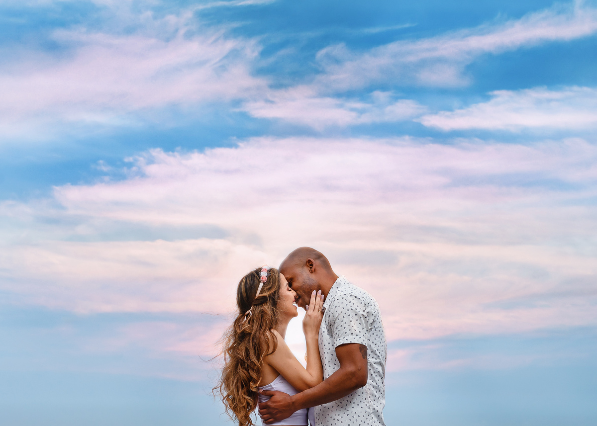 O local escolhido pelo casal foi a Praia dos Pescadores, Itanhaém – SP. Assim como o tempo que teve desde ensolarado a garoa, tudo fluiu naturalmente entre eles, no início tímidos, mas logo esqueceram da câmera e curtiram a linda paisagem e o momento que estavam vivendo ali. Focamos nos gestos, nos sorrisos, no olhar, no toque, foi lindo! Depois os levamos a uma outra praia, também em Itanhaém, onde tem muitas árvores, para buscarmos novas composições e aquele toque de estar em um bosque perfeito, romântico e inspirador. E finalizamos com algo mais casual e urbano pelas ruas da linda Itanhaém, próximo ao centro.