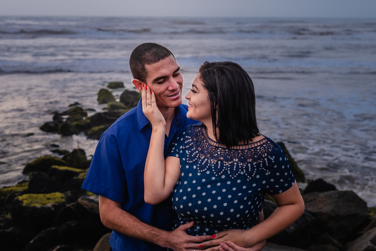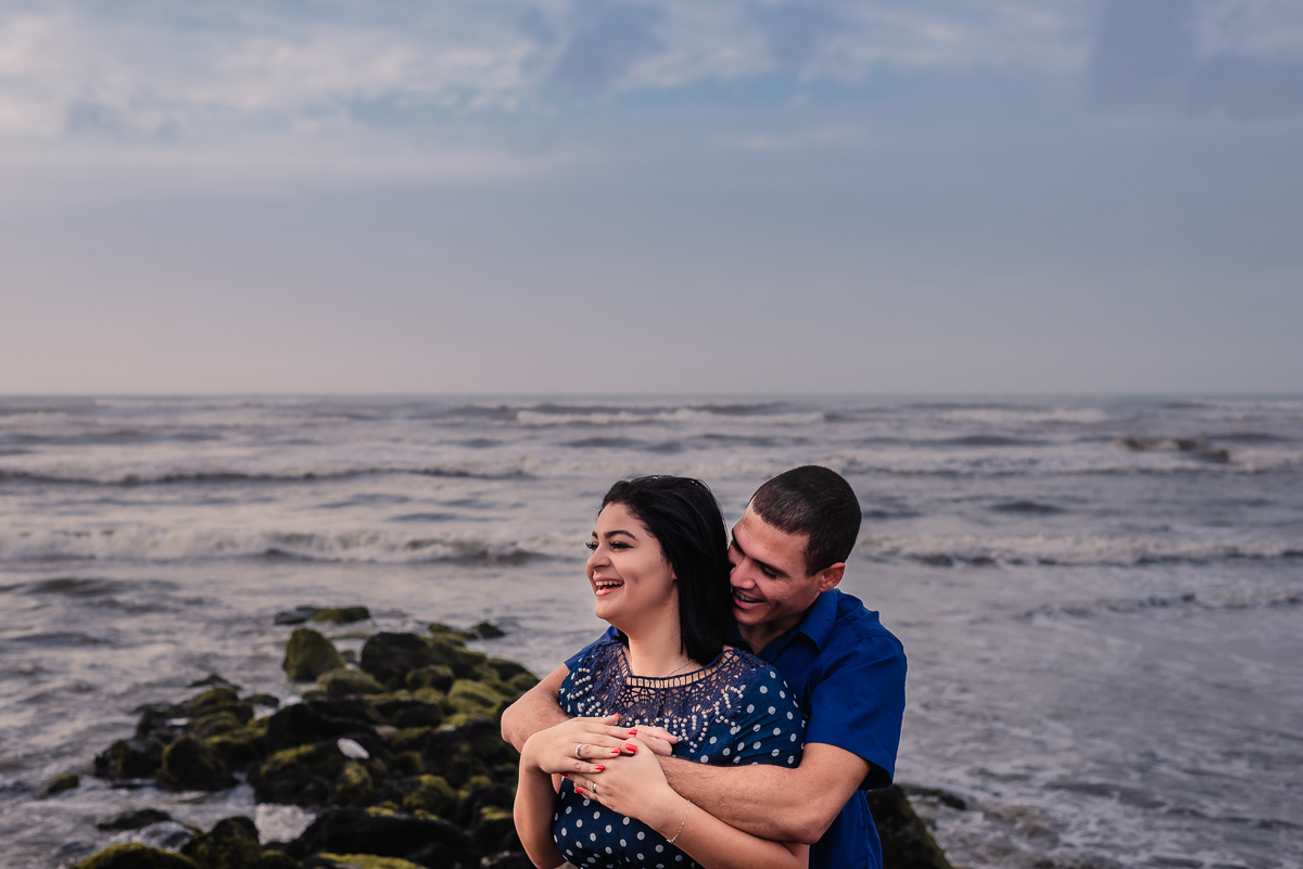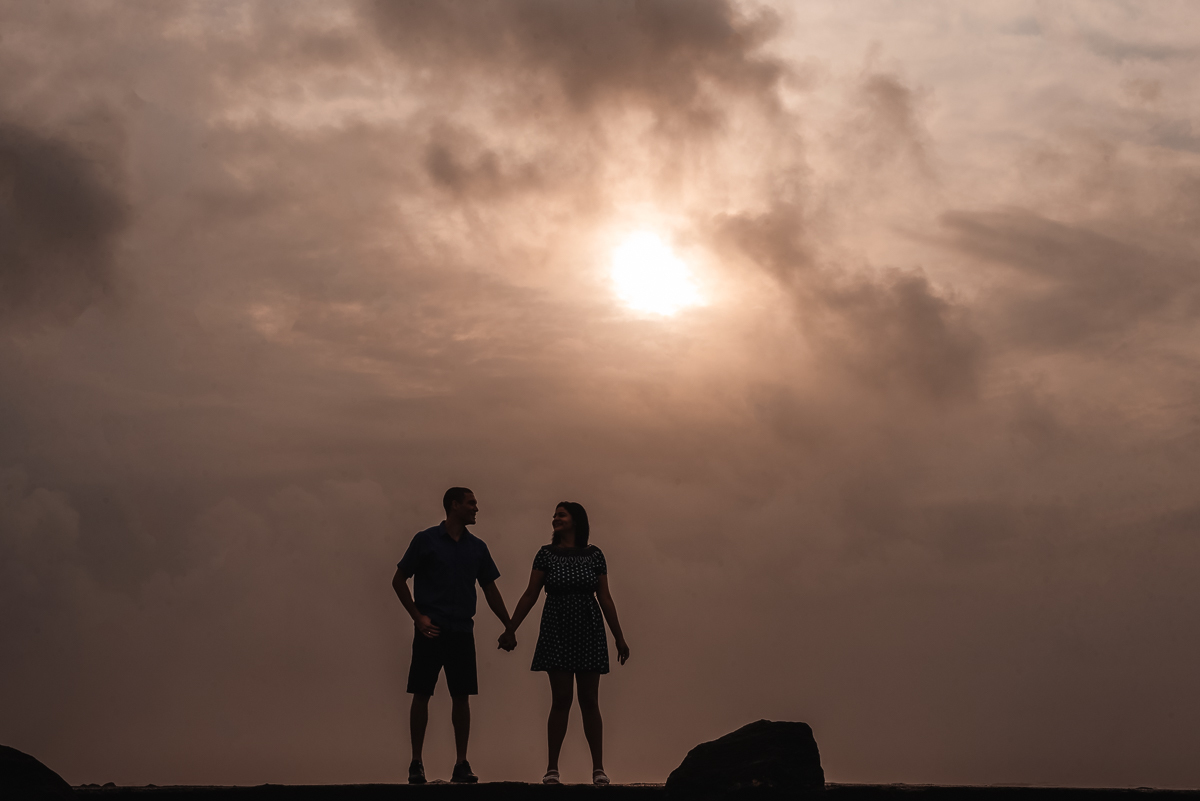O casal torcia para fazer sol e justo no mês que estava mais chuvoso, porém para nosso sorte durante o amanhecer do ensaio; o sol deu seu ar da graça refletindo belas luzes em contraste com as nuvens e chão molhado e a alegria da Libni e do Ederson ao tirarem fotos juntos (eles adoram) o que ficou ainda mais fácil e divertido a direção com direito a momentos de dança na praia, beijos e abraços.