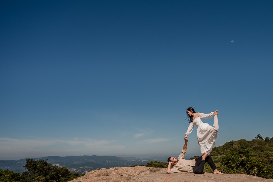 Mesmo acordando super cedo, os dois não perderam a energia e quiseram inclusive, fazer suas "acrobacias" que é algo que faz parte do dia a dia deles. Um equilíbrio perfeito de luz, paz, amor, amizade, segurança e felicidade por terem se encontrado e estarem perto de realizar um grande sonho juntos! Ainda teve mais fotos na Pedreira, próxima ao Pico, outro local com um visual maravilhoso.